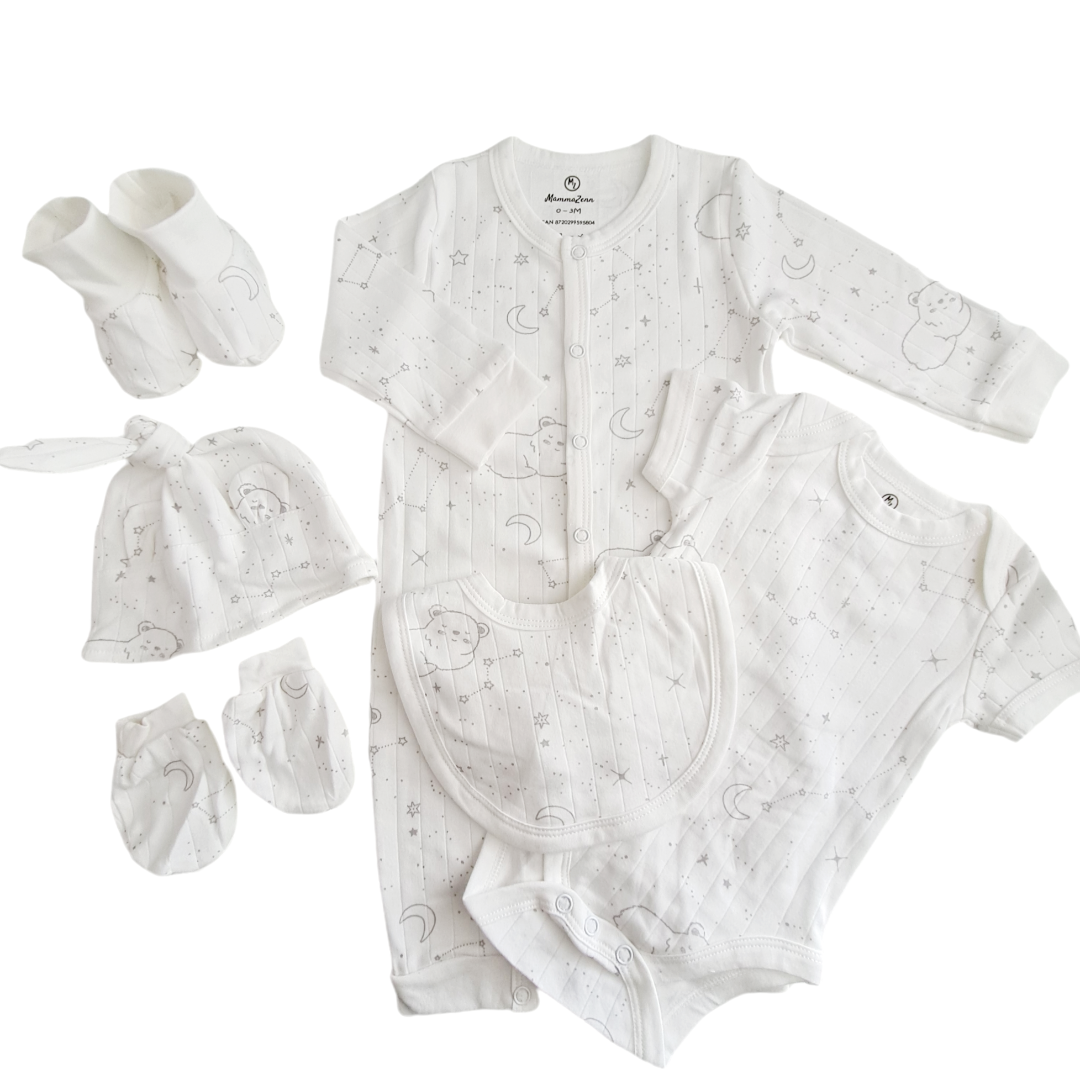 De neutrale witte kleuren (unisex) maken dit cadeau geschikt voor zowel jongens als meisjes. Geef een cadeau dat met liefde is samengesteld en waar de ouders dol op zullen zijn! Ook leuk voor een baby shower of gender reveal party! Ook leverbaar in Mint en Roze kleertjes.